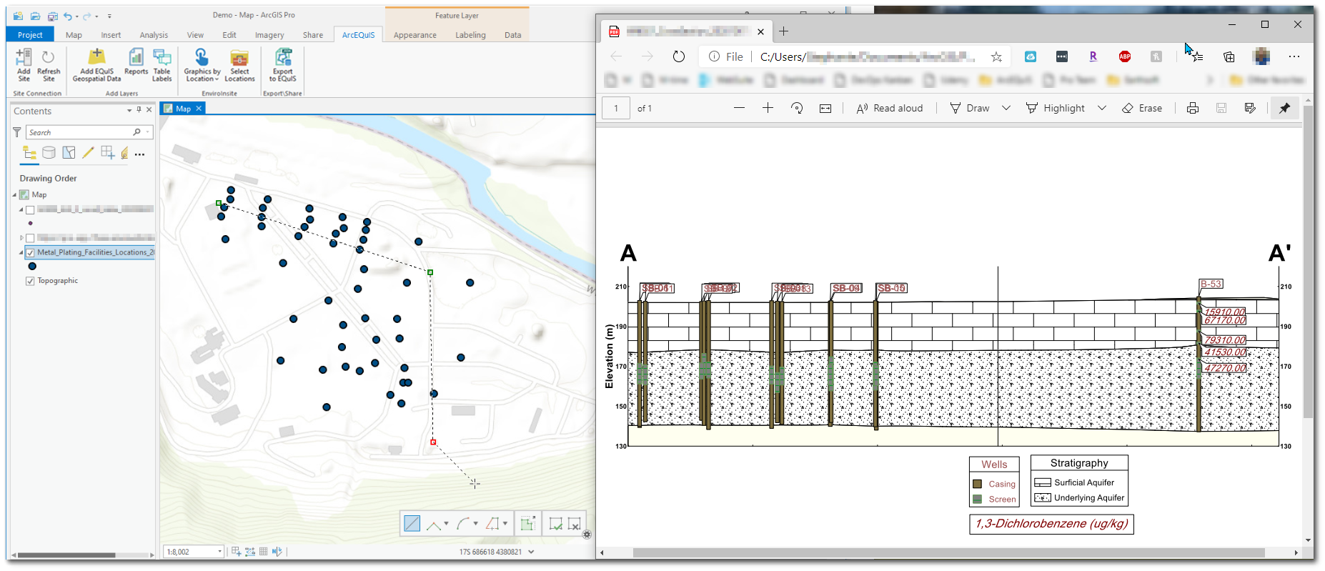 Before generating these graphics by location, EnviroInsite and PDF prerequisites are required (in addition to those required for ArcGIS Pro and the ArcEQuIS add-in).