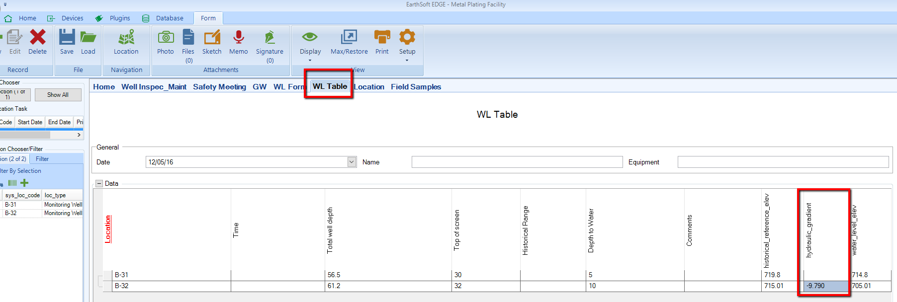 5.The selected pair of wells will be displayed, as well as the calculated hydraulic gradient, flagging the values outside of predefined range.